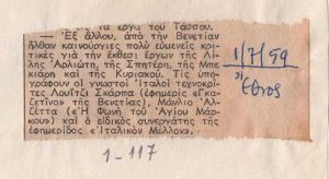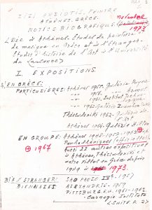 Βιογραφικά σημειώματα καλλιτεχνών Νίκος Εγγονόπουλος (1907 - 1985) ; Κώστας Ανδρέου (1917 - 2007) ; Τώνης Π. Σπητέρης (1910 - 1986) ; Βάσω Κατράκη (1914 - 1988) ; Ιωάννα Σπητέρη-Βεροπούλου (1920 - 2000) ; Μιχάλης Τόμπρος (1889 - 1974) ; Τάσσος Α. (1914 - 1985) ; Νικόλαος Χατζηκυριάκος-Γκίκας (1906 - 1994) ; Γιάννης Μόραλης (1916 - 2009) ; Γεώργιος Γουναρόπουλος (1889 - 1977) ; Σπύρος Παπαλουκάς (1892 - 1957) ; Παύλος (Διονυσόπουλος) (1930 - 2019) ; Γιάννης Μηταράκης (1898 - 1963) ; Τζον Χριστοφόρου (1921 - 2014) ; Δημήτρης Περδικίδης (1922 - 1989) ; Νίκος Σαχίνης (1924 - 1989) ; Θάνος Τσίγκος (1914 - 1965) ; Γαβριέλλα Σίμωσι (1926 - 1999) ; Γιάννης Σπυρόπουλος (1912 - 1990) ; Γιάννης Τσαρούχης (1910 - 1989) ; Κώστας Τσόκλης (1930) ; Γιώργος Σκοτεινός (1937) ; Γιώργος Ζογγολόπουλος (1903 - 2004) ; Λίλη Αρλιώτη (1908 - 1979) ; Φρόσω Ευθυμιάδη-Μενεγάκη ; Δανιήλ (1924 - 2008) ; Αχιλλέας Απέργης (1909 - 1986) ; Αλέκος Κοντόπουλος (1904 - 1975) ; Κώστας Κουλεντιανός (1918 - 1995) ; Γιώργος Μπουζιάνης (1885 - 1959) ; Γιάννης Γαΐτης (1923 - 1984) ; Ιωάννης Αβραμίδης (1922 - 2016) ; Κούλα Μπεκιάρη (1905 - 1992) ; Χρίστος Καράς (1930 - 2023) ; Τάκις (1925 - 2019) ; Φιλόλαος (1923 - 2010) ; Άλκης Πιερράκος (1920 - 2017) ; Γιάννης Κουνέλλης ; Βλάσης Κανιάρης (1928 - 2011) ; Κώστας Καραχάλιος (1923 - 2007) ; Κλέαρχος Λουκόπουλος (1906 - 1995) ; Αγλαΐα Λυμπεράκη (1923 - 1985) ; Γιώργος Μαυροΐδης (1912 - 2003) ; Μιχαήλ Μιχαηλίδης (1923 - 2015) ; Ιάσων Μολφέσης (1925 - 2009)