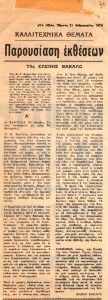 Σπύρος Παπαλουκάς Βάσω Κατράκη (1914 - 1988) ; Πάνος Βαλσαμάκης (1900 - 1986) ; Σπύρος Βασιλείου (1902 - 1985) ; Ορέστης Κανέλλης (1910 - 1979) ; Τάσσος Α. (1914 - 1985) ; Ελένη Βακαλό (1921 - 2001) ; Νικόλαος Χατζηκυριάκος-Γκίκας (1906 - 1994) ; Σπύρος Παπαλουκάς (1892 - 1957) ; Αγήνωρ Αστεριάδης (1898 - 1977) ; Τέρψη Κυριακού ; Γιώργος Σικελιώτης (1917 - 1984) ; Γιάννης Μιγάδης (1926 - 2017) ; Σωσώ Χουτοπούλου-Κονταράτου (1923 - 1984) ; Γιάννης Γραμματικόπουλος (1928) ; Χρήστος Καπράλος (1909 - 1993) ; Μίνως Αργυράκης (1920 - 1998) ; Θόδωρος Μάρκελλος (1925 - 2015) ; Λίλη Αρλιώτη (1908 - 1979) ; Αλέκος Κοντόπουλος (1904 - 1975) ; Γιώργος Βακαλό (1902 - 1991) ; Σωκράτης Καραντινός (1906 - 1979) ; Νίκος-Γαβριήλ Πεντζίκης (1908 - 1993) ; Βέρα Χουτζούμη (1920 - 2007) ; Νικόλαος Βλαβιανός (1929) ; Χαρίκλεια Αλεξανδρίδου-Στεφανοπούλου (1889 - 1963) ; Ελένη Θεοχάρη-Περάκη ; Φώτης Ζαχαρίου (1909 - 2001) ; Εμμανουήλ Ζέπος- Αλαφούζος ; Άγγελος Θεοδωρόπουλος (1883 - 1965) ; Μαρία Αναγνωστοπούλου-Βρανίκα (1890 - 1971) ; Δημήτριος Κεντάκας ; Άγγελος Κόντης (1912 - 2005) ; Γιώργος Μανουσάκης (1914 - 2003) ; Ιωάννα Ασμάνη (1929) ; Αγλαϊα Παπά ; Γεώργιος Παραλής (1908 - 1975) ; Κώστας Πλακωτάρης (1902 - 1969) ; Σταμάτης Σταματόπουλος (1920 - ; ) ; Γιώργος Αναγνωστόπουλος (20ος αιώνας) ; Πέτρος Βαμπούλης (1929) ; Φώτης Φωτιάδης ; Μιχαήλ Κανάκης