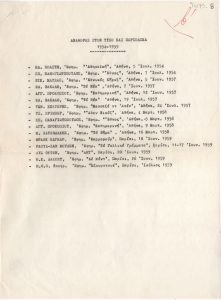 Κατάλογος Ελλήνων καλλιτεχνών Κώστας Ανδρέου (1917 - 2007) ; Τώνης Π. Σπητέρης (1910 - 1986) ; Ιωάννα Σπητέρη-Βεροπούλου (1920 - 2000) ; Μιχάλης Τόμπρος (1889 - 1974) ; Δημήτρης Χατζής (1921 - 2006) ; Μπέλλα Ραφτοπούλου (1902 - 1992) ; Γαβριέλλα Σίμωσι (1926 - 1999) ; Σωσώ Χουτοπούλου-Κονταράτου (1923 - 1984) ; Χρήστος Καπράλος (1909 - 1993) ; Γεράσιμος Σκλάβος (1927 - 1967) ; Αντώνης Καραχάλιος ; Γιώργος Ζογγολόπουλος (1903 - 2004) ; Θανάσης Απάρτης (1899 - 1972) ; Φρόσω Ευθυμιάδη-Μενεγάκη ; Αχιλλέας Απέργης (1909 - 1986) ; Αντώνης Σώχος (1888 - 1975) ; Άλεξ Μυλωνά (1923 - 2016) ; Κώστας Κουλεντιανός (1918 - 1995) ; Κώστας Βαλσάμης (1908 - 2003) ; Ιωάννης Αβραμίδης (1922 - 2016) ; Θόδωρος (1931 - 2018) ; Τάκις (1925 - 2019) ; Χρύσα (Βαρδέα) (1933 - 2013) ; Λάζαρος Λαμέρας (1913 - 1998) ; Φιλόλαος (1923 - 2010) ; Γεώργιος Γεωργίου (1916 - ; ) ; Γιάννης Παππάς (1913 - 2005) ; Νικόλαος Ίκαρης (1920 - 1994) ; Δημήτρης Καλαμάρας (1924 - 1997) ; Κώστας Κλουβάτος (1923 - 2007) ; Λουκάς Σαμαράς (1936) ; Λεκάκης Μιχάλης ; Κλέαρχος Λουκόπουλος (1906 - 1995) ; Αγλαΐα Λυμπεράκη (1923 - 1985) ; Δημήτρης Αρμακόλας (1939 - 2009) ; Γιώργος Νικολαΐδης (1924 - 2001) ; Κοσμάς Ξενάκης (1925 - 1984) ; Ναυσικά Πάστρα (1921 - 2011) ; Πολύγνωτος Βαγής (1894 - 1965) ; Νικόλαος Περαντινός (1910 - 1991) ; Αντώνης Μαυρίκιος